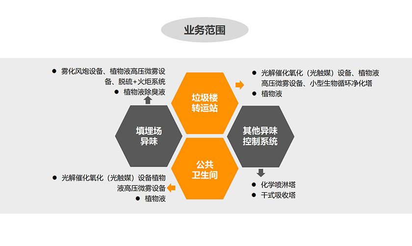吉成環(huán)境致力于異味(惡臭)污染控制,擁有光觸媒光解催化氧化(光觸媒)、植物液高壓微霧設(shè)備、生物循環(huán)凈化塔、化學(xué)噴淋塔等核心技術(shù)。為客戶提供工業(yè)廢氣(惡臭氣體)治理技術(shù)的咨詢和設(shè)計,除臭設(shè)備的生產(chǎn)、銷售、安裝調(diào)試及運行維護等優(yōu)質(zhì)方案及服務(wù)。